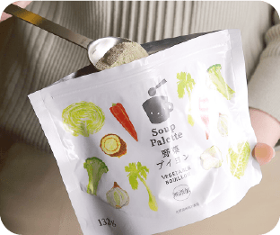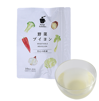 ブイヨンを一からつくるのは大変だけど、スープパレットの野菜ブイヨンなら溶かすだけで簡単。手軽に味の奥行きを出すことができ、料理のおいしさがグッとアップします。
