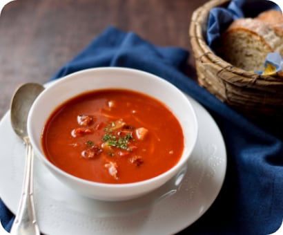 野菜が苦手な子どももおかわり!と言いたくなるスープを目指して。コーン、トマト、レッドビートと、メインの野菜が引き立つように、色々な野菜を組み合わせて、野菜の美味しさで作り上げたスープです。
